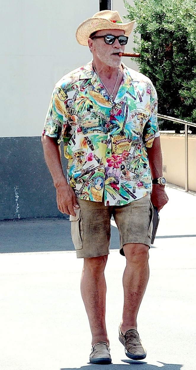 Cu stil, la 73 de ani. Arnold Schwarzenegger se bucură de un trabuc și o plimbare cu mașina decapotabilă de lux