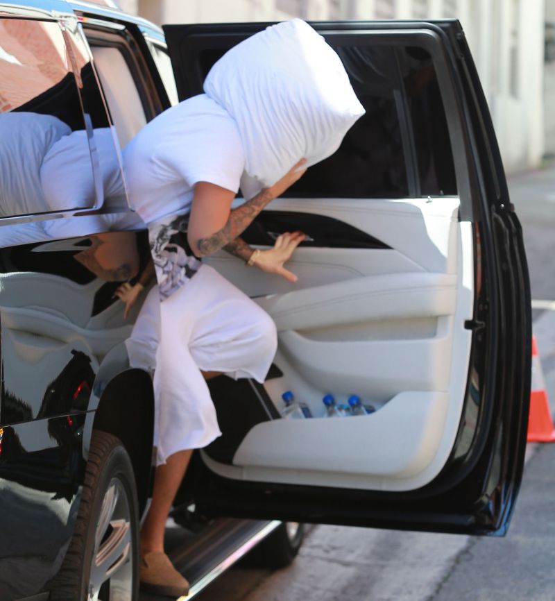 Cântăreţ celebru, cu perna pe cap pe stradă | FOTO