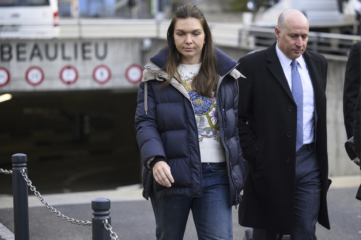 Former WTA number 1 tennis player Simona Halep of Romania arrives with her lawyer Howard Jacobs, right, for a hearing in the arbitration procedures against International Tennis Integrity Agency (ITIA) at the international Court of Arbitration for Sport, CAS, in Lausanne, Switzerland, Wednesday, Feb. 7, 2024. The Court of Arbitration for Sport, CAS, will examine the case of Romanian tennis star Simona Halep after she filed an appeal against her four-year suspension for doping.,Image: 844196090, License: Rights-managed, Restrictions: This content is intended for editorial use only. For other uses, additional clearances may be required. MANDATORY CREDIT, Model Release: no, Pictured: Simona Halep