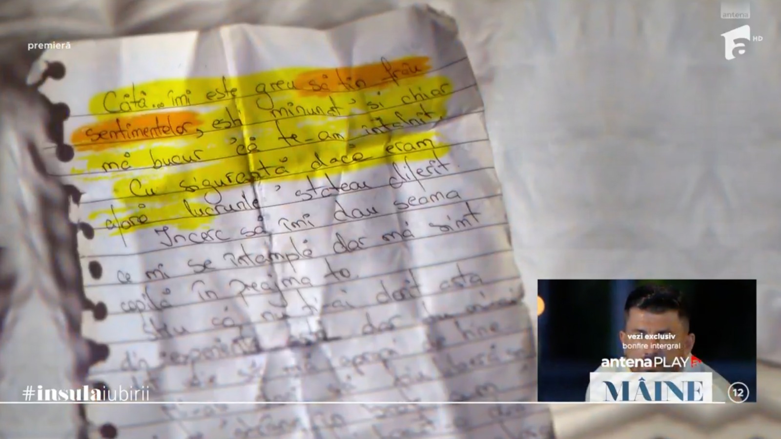 Ce a scris Maria de la Insula iubirii 2025 în scrisoarea pe care i-a dat-o lui Cătălin. Reacția lui Marius Avram