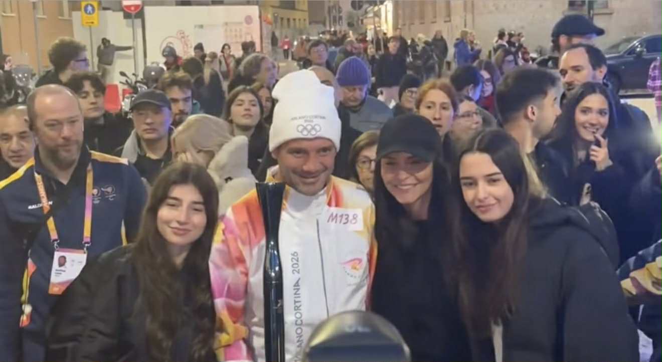 Cristi Chivu, alături de soția Adelina și fiicele lor la purtarea torței, cu o zi înainte de începerea Jocurilor Olimpice de Iarnă 2026. Familia a pozat împreună