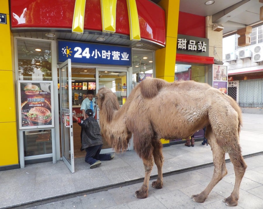 Cu CĂMILA LA CERŞIT, noua metodă de a cere de pomană! Pe când şi la noi? FOTO