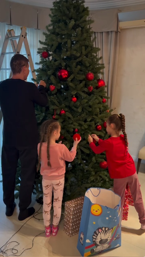 Valentina Pelinel și Cristi Borcea au împodobit alături de copii bradul de Crăciun încă din luna noiembrie