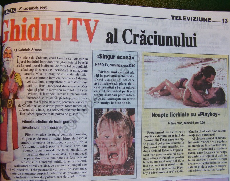 „Singur acasă”, film realizat de Chris Columbus în 1990, a fost pentru prima oară difuzat pe un post românesc în decembrie 1995, anul inaugural al PRO TV, moment consemnat atunci de ziarul Libertatea!