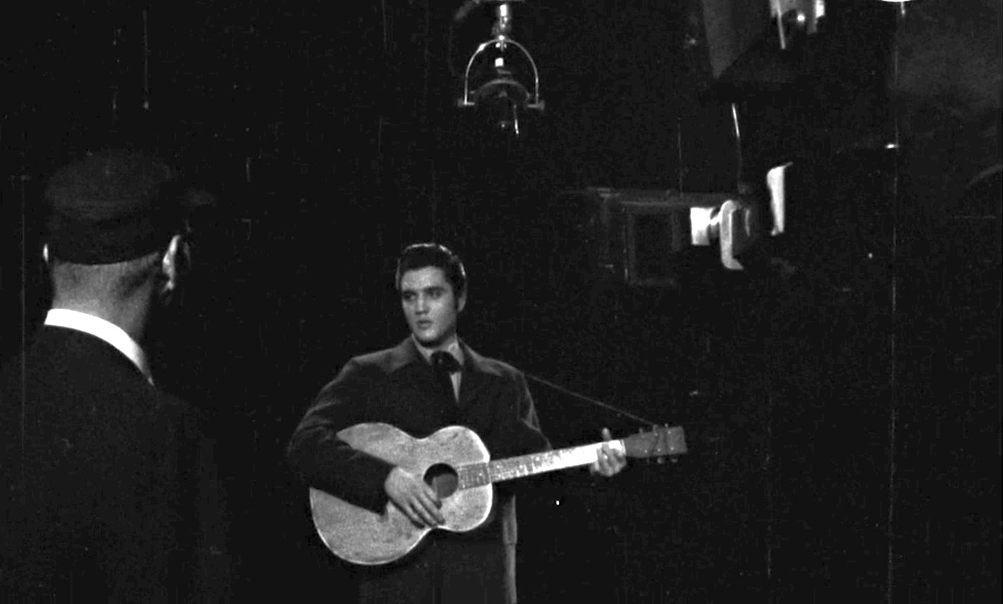 Elvis Presley și regizorul, la fostul Junco Studios din New York, pe 29 octombrie 1956. Captură video: FOX