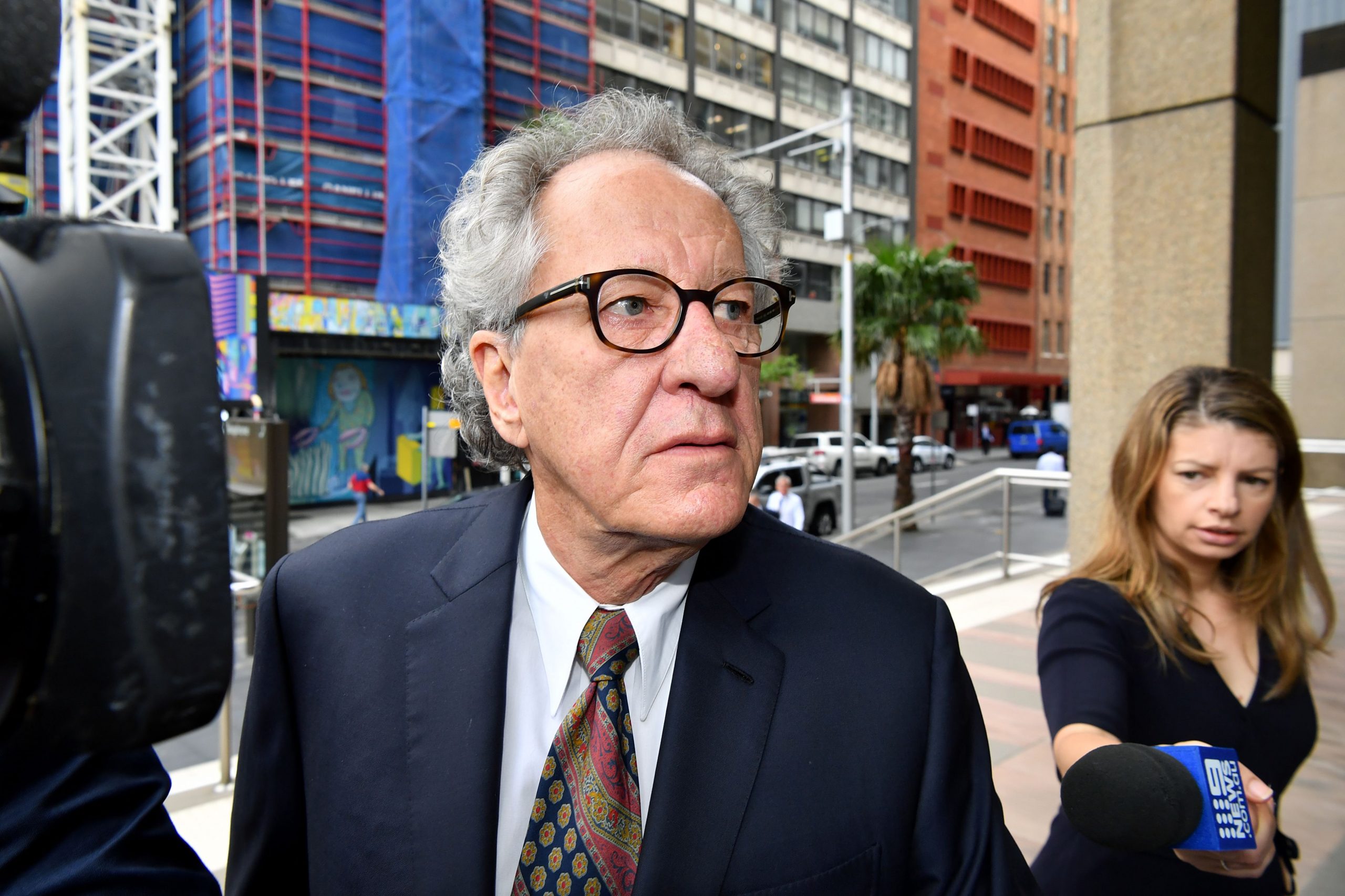 04 November 2019, Australia, Sydney: Australia actor Geoffrey Rush (L) arrives at the Federal Court where three federal court judges are due to begin hearing an appeal by Nationwide News against a finding it defamed Rush and against his damages award of $2.9 million. Photo: Joel Carrett/AAP/dpa