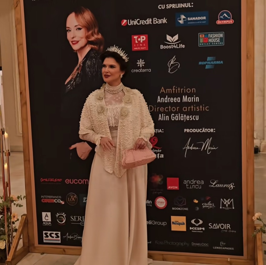 Monica Bîrlădeanu s-a transformat în Regina Maria la gala Andreei Marin. Apariția spectaculoasă a actriței: „Divină”