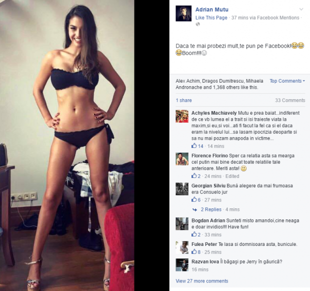 Zilele trecute, Mutu se lăuda pe Facebook cu o imagine cu soția sa în vacanță în Turcia, la Bodrum. Costum de baie rezistă.