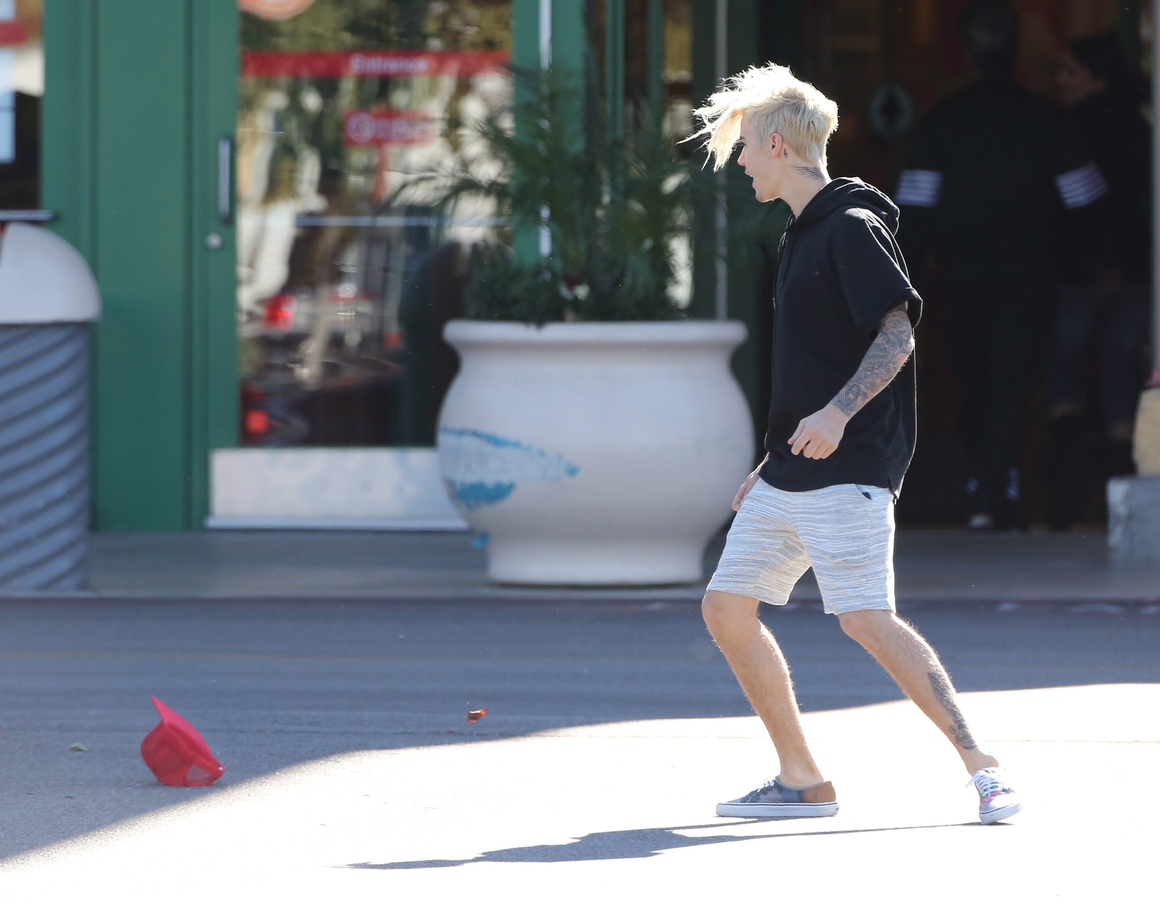 PREMIUM EXCLUSIVE Justin Bieber loses his hat in the wind
