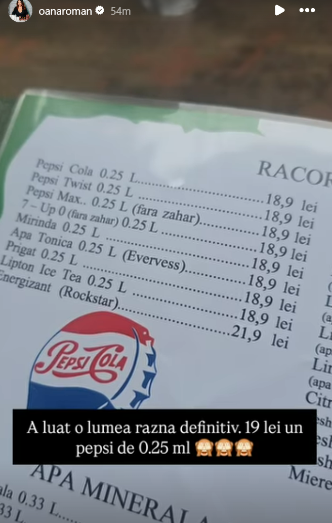 Reacția Oanei Roman când a văzut cât costă o sticlă de suc de 250 ml, la o terasă. „A luat-o lumea razna definitiv”