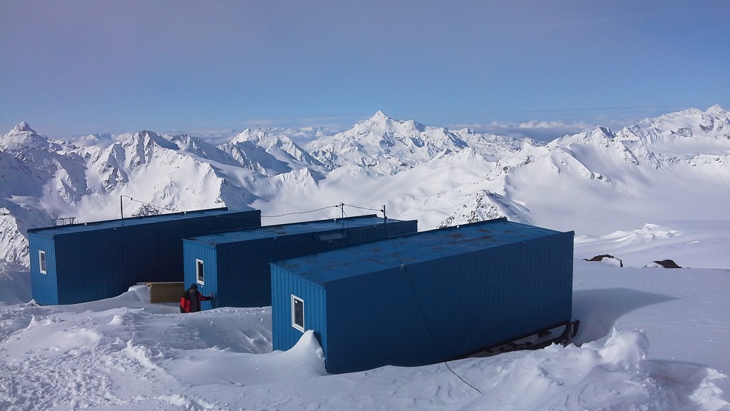- La 4100 de metri se află celebra cabană Priut-11, finalizată în 1939 și care a avut o istorie remarcabilă în timpul erei de aur a alpinismului sovietic. Numit după un grup de 11 oameni de știință care au folosit situl ca bază în anii 1920, a fost construit ca un hotel futurist, cu un exterior placat cu metal și avea trei etaje. Putea găzdui 120 de persoane, era complet rezistent la intemperii și chiar avea electricitate.