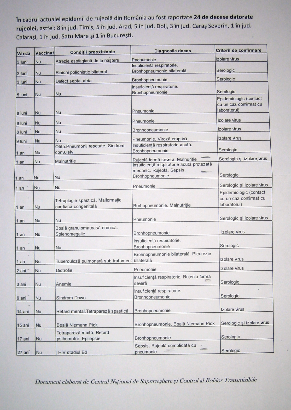 O întrebare ”sub centură„ a fost cea legată de decesele cauzate de rujeolă. Conform datelor oficiale ale Centrului de Supraveghere și Control al Bolilor Infecțioase, din toate decesele declarate ca fiind legate de epidemia de rujeolă, doar în patru cazuri a existat ”și rujeolă”, în rest moartea a survenit din cauza exclusivă a altor boli. La întrebarea ”de ce a fost mințită populația pentru a accepta vaccinarea?” – răspunsul se lasă încă așteptat.