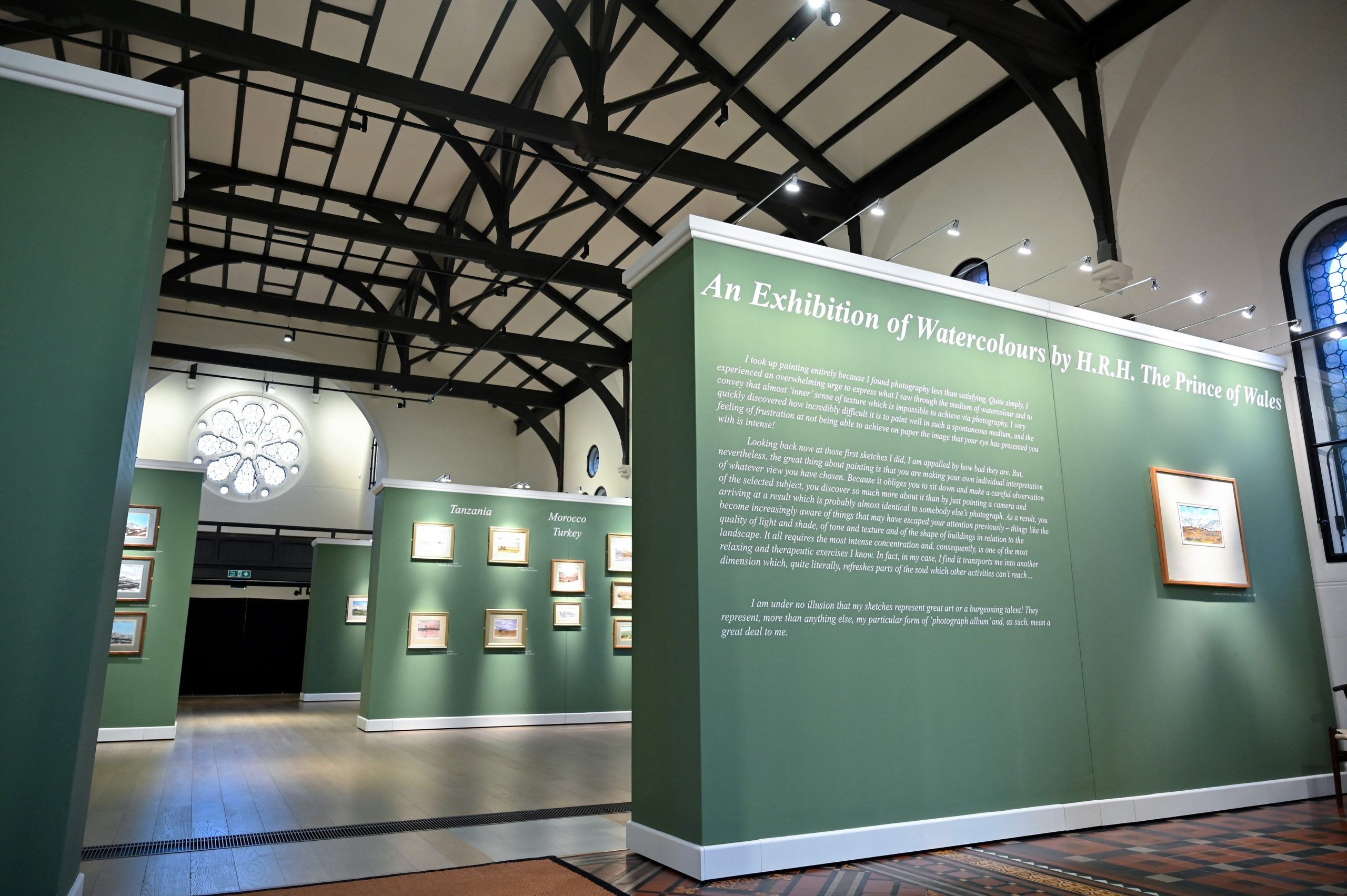 Watercolour paintings by Britain's Prince Charles, Prince of Wales are pictured at an exhibition entitled 'HRH The Prince of Wales's Watercolours' at the Garrison Chapel in London on January 12, 2022. The exhibition, hosted by The Prince's Foundation, is set to run until February 14, 2022.,Image: 652330481, License: Rights-managed, Restrictions: RESTRICTED TO EDITORIAL USE, MANDATORY MENTION OF THE ARTIST UPON PUBLICATION, TO ILLUSTRATE THE EVENT AS SPECIFIED IN THE CAPTION - NO SALES - NOT FOR USE AFTER 19/01/2022" -- that date being 7 days after publication., Model Release: no, Credit line: Profimedia