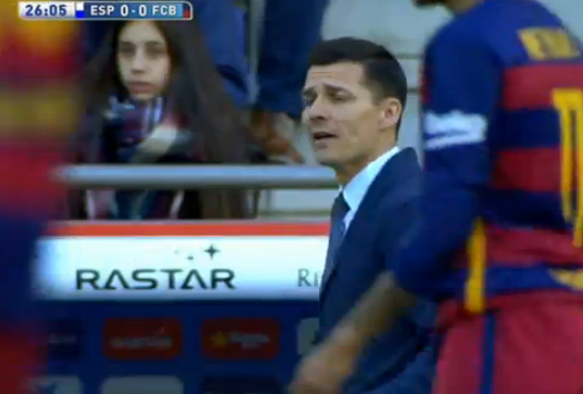 În prima parte, spre final, Espanyol a cerut al doilea ”galben” pentru Javier Mascherano și, implicit, eliminarea. Argentinianul a făcut henț în afara careului. Lovitura liberă a fost acordată pentru Espanyol, nu și ”galbenul”. Mascherano a fost avertizat o dată în minutul 23.