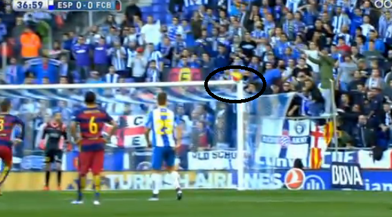Min. 25 – Opotunitate mare Espanyol, mingea trece al un metru de linia porții catalane, după un corner.