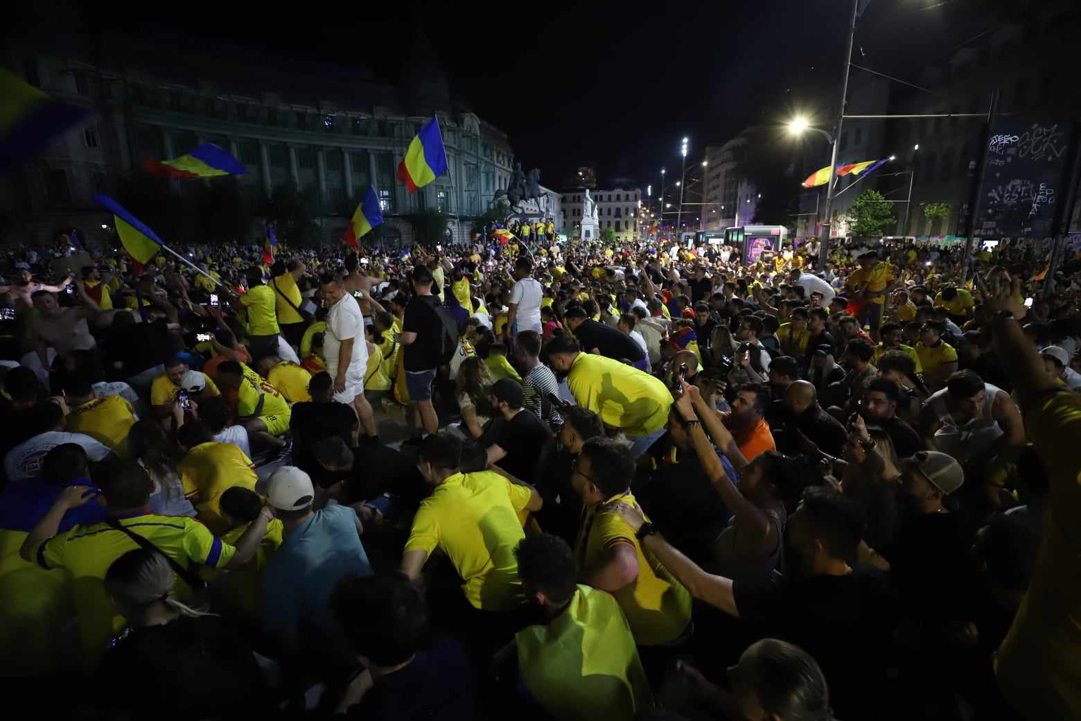 Sărbătoare și la București! Atmosferă incendiară în Piața Universității după ce tricolorii s-au calificat în optimi la Euro 2024