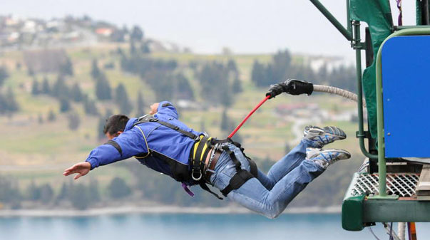 Foto | Rugbistul Iulian Dumitraș şi doi coechipieri au sărit cu coarda
