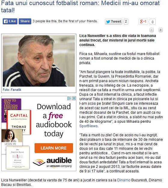 Articolul din ziare.com în care apare poza lui Constantin Frățilă, în loc de cea a lui Lică Nunweiller FOTO: Captură