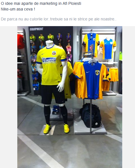 La nici 24 de ore, pe o binecunoscută rețea de socializare, o fotografie din reprezentanța de la Ploiești a sponsorului tehnic a celor două echipe devenea virală și atrăgea critici dure din partea fanilor ”lupilor galbeni: ”O idee mai aparte de marketing în AFI Ploiești – Nike-um așa ceva! ”; ”De parcă nu au culorile lor… trebuie să ni le strice pe ale noastre…” ; ”După 12 mă duc să-mi iau un tricou de acolo, să vezi ce scandal fac acolo!”, sunt doar câteva din mesajele fanilor petroliști care însoțesc fotografia cu pricina.