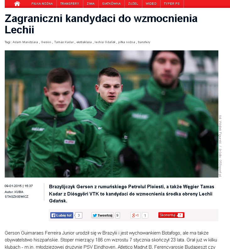 Site-ul przegladsportowy.pl îi face o prezentare amănunţită fundaşului brazilian şi îl dă ca pe unul dintre stranierii care o vor întări din acest retur pe Lechia. Iarna trecută, când a venit la Ploieşti, Gerson avea stipulată în contract o clauză de cumpărare definitivă la sfârşitul perioadei de împrumut, de aproximativ 200.000 de euro.