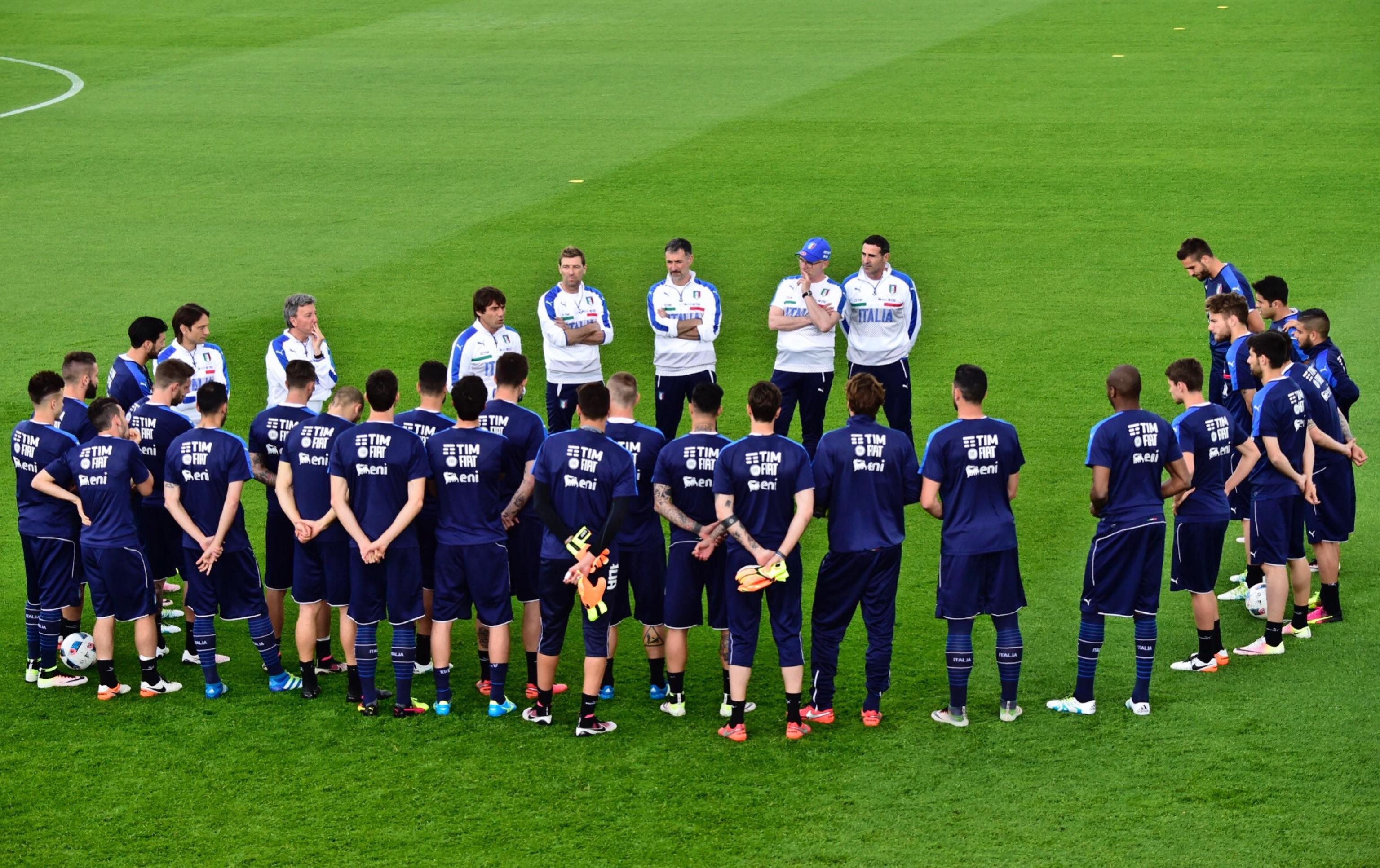 epa05314832 Italy's players during a training session of Italian national soccer team at Coverciano sportive center in Florence, Italy, 18 May 2016. EPA/MAURIZIO DEGL'INNOCENTI