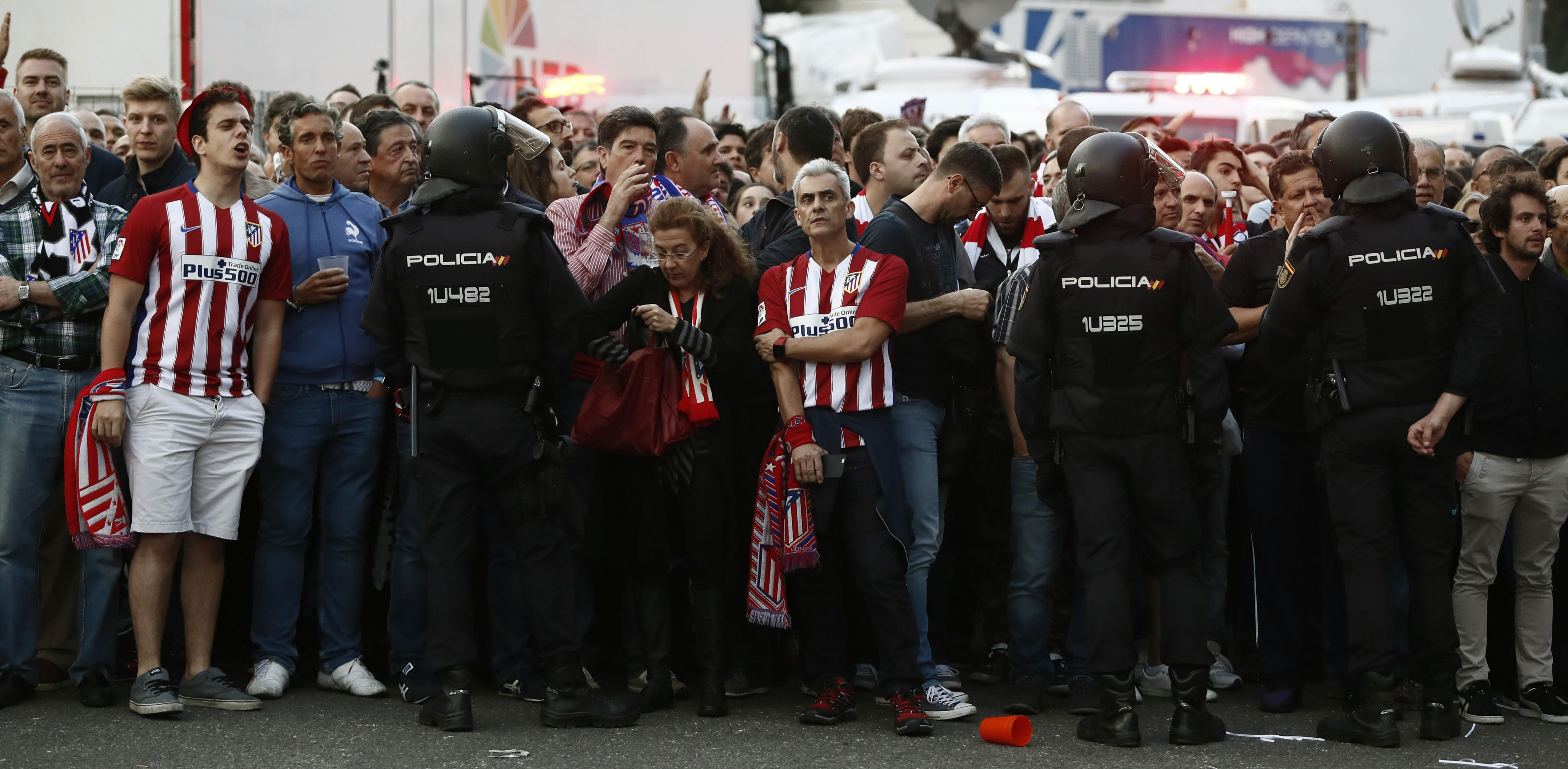 epa05955677 Atletico de Madrid's fans wait outside the Vicente Calderon stadium in Madrid, Spain, 10 May 2017. Real Madrid and Atletico de Madrid face at the UEFA Champions League semifinal second leg match 10 May. EPA/Mariscal