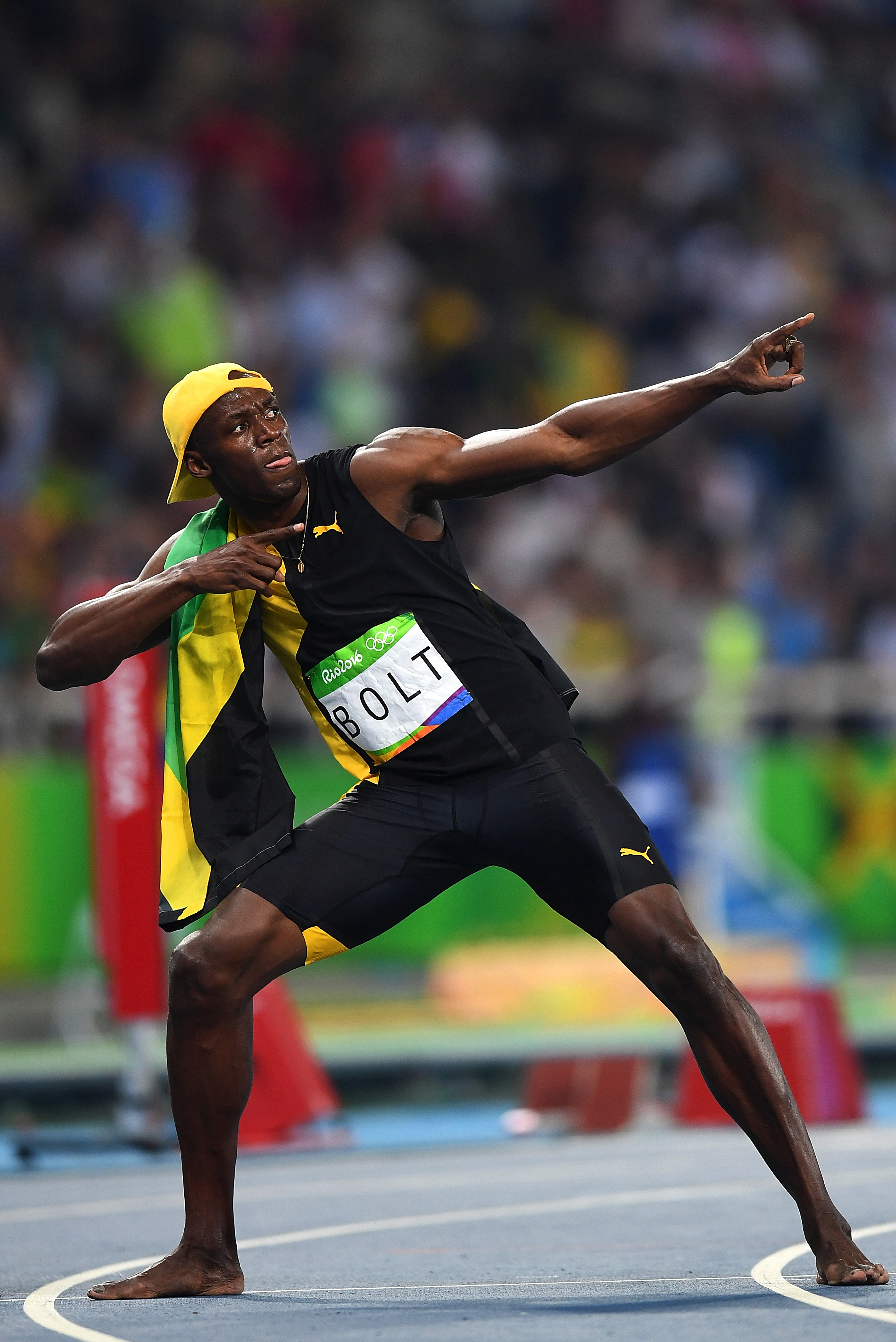 epa05486189 Usain Bolt of Jamaica wins the men's 100m final of the Rio 2016 Olympic Games Athletics, Track and Field events at the Olympic Stadium in Rio de Janeiro, Brazil, 14 August 2016. EPA/ETTORE FERRARI