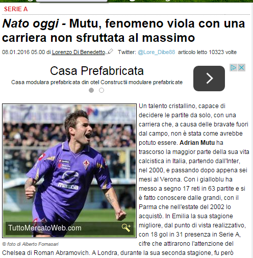 Italienii nu l-au uitat pe Mutu și îi dedică un articol în care îi inventariază cariera. Mutu este singurul român care a marcat peste 100 de goluri în Serie A.