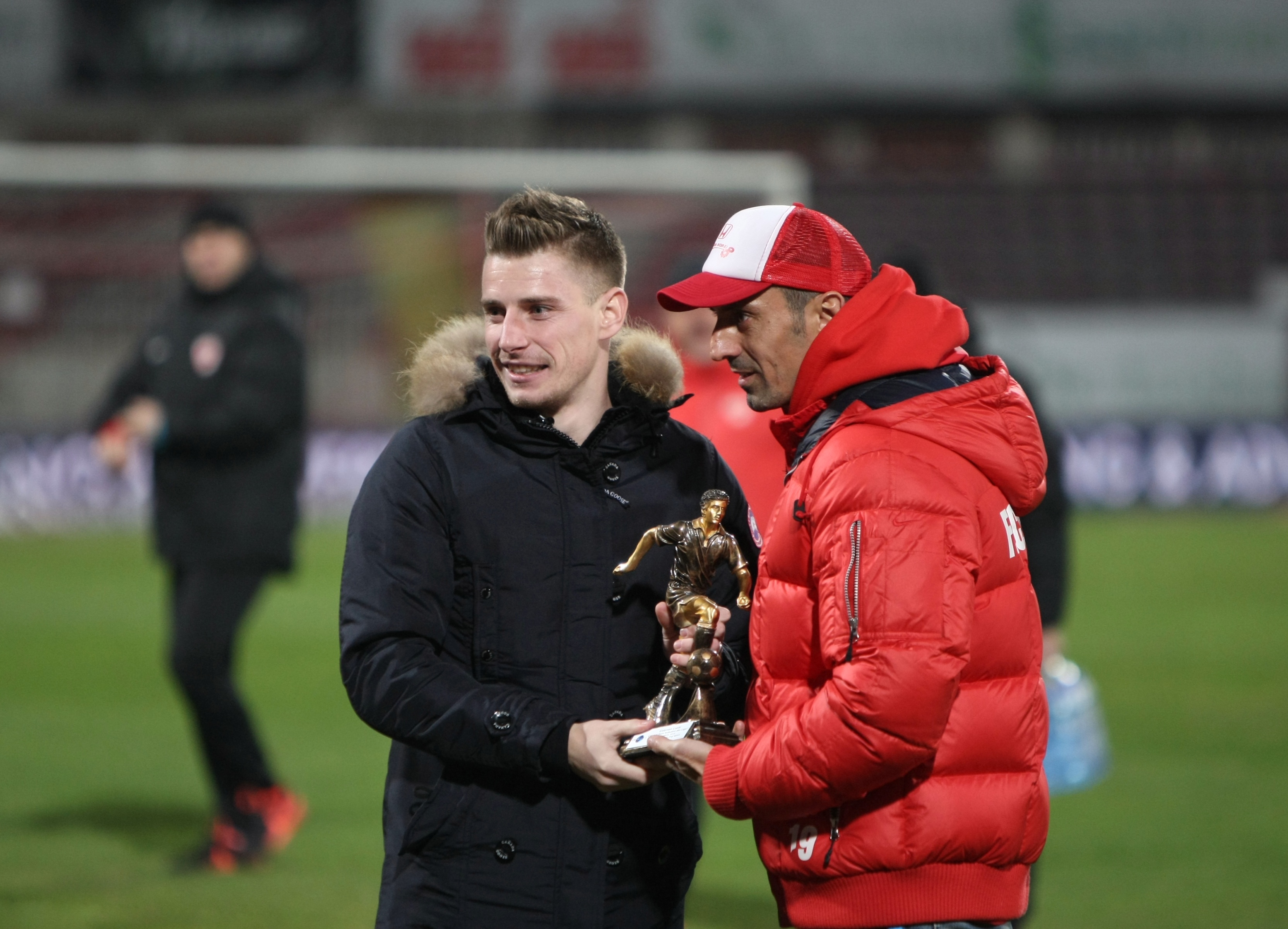 Vali Lazăr a fost premiat de Ionel Dănciulescu înainte de meci FOTO: Vlad Chirea