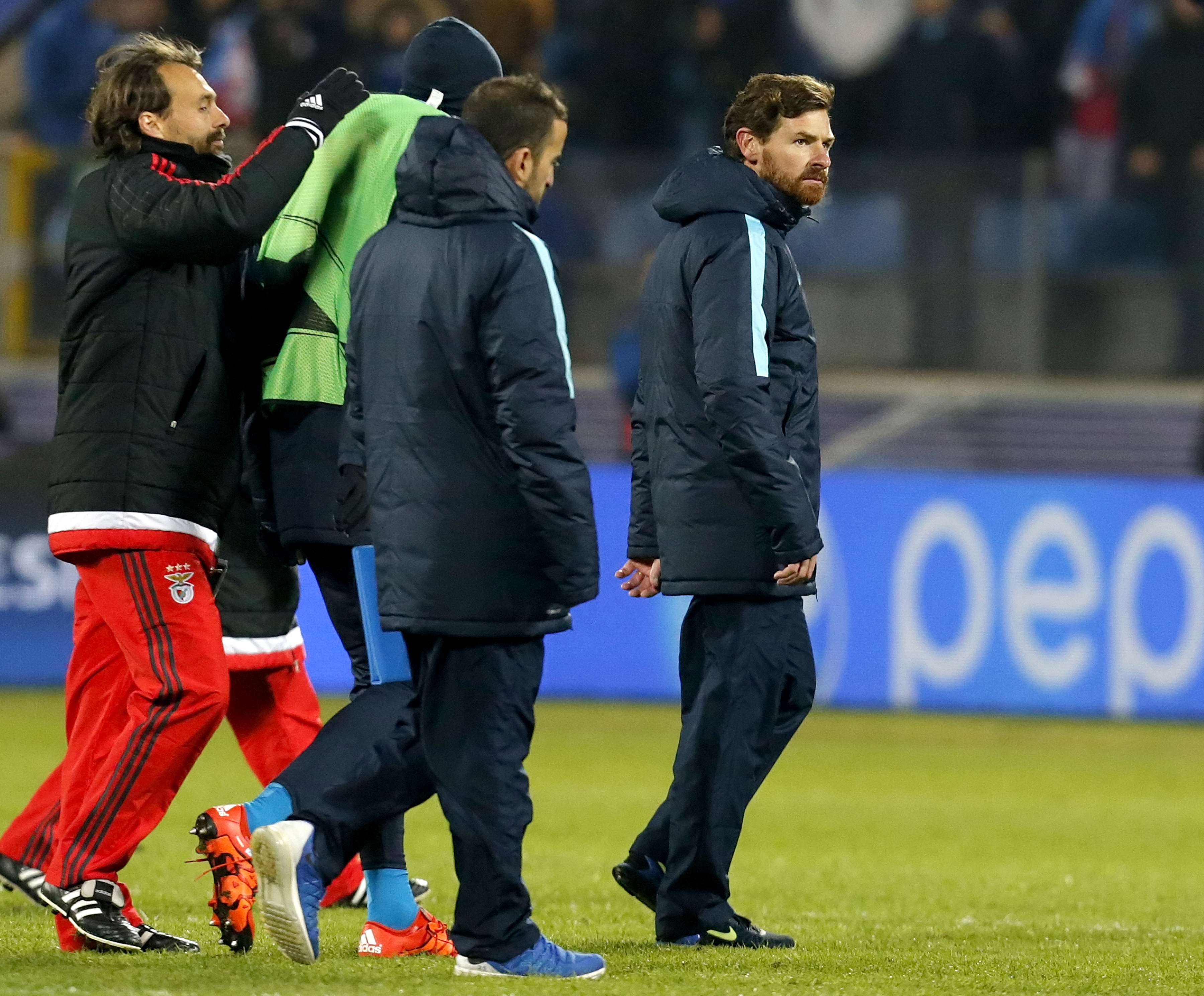 epa05203334 FC Zenit St. Petersburg's head coach Andre Villas-Boas (R) reacts after losing against SL Benfica's during the UEFA Champions League Round of 16, second leg soccer match at Petrovsky stadium in St. Petersburg, Russia, 09 March 2016. EPA/ANATOLY MALTSEV