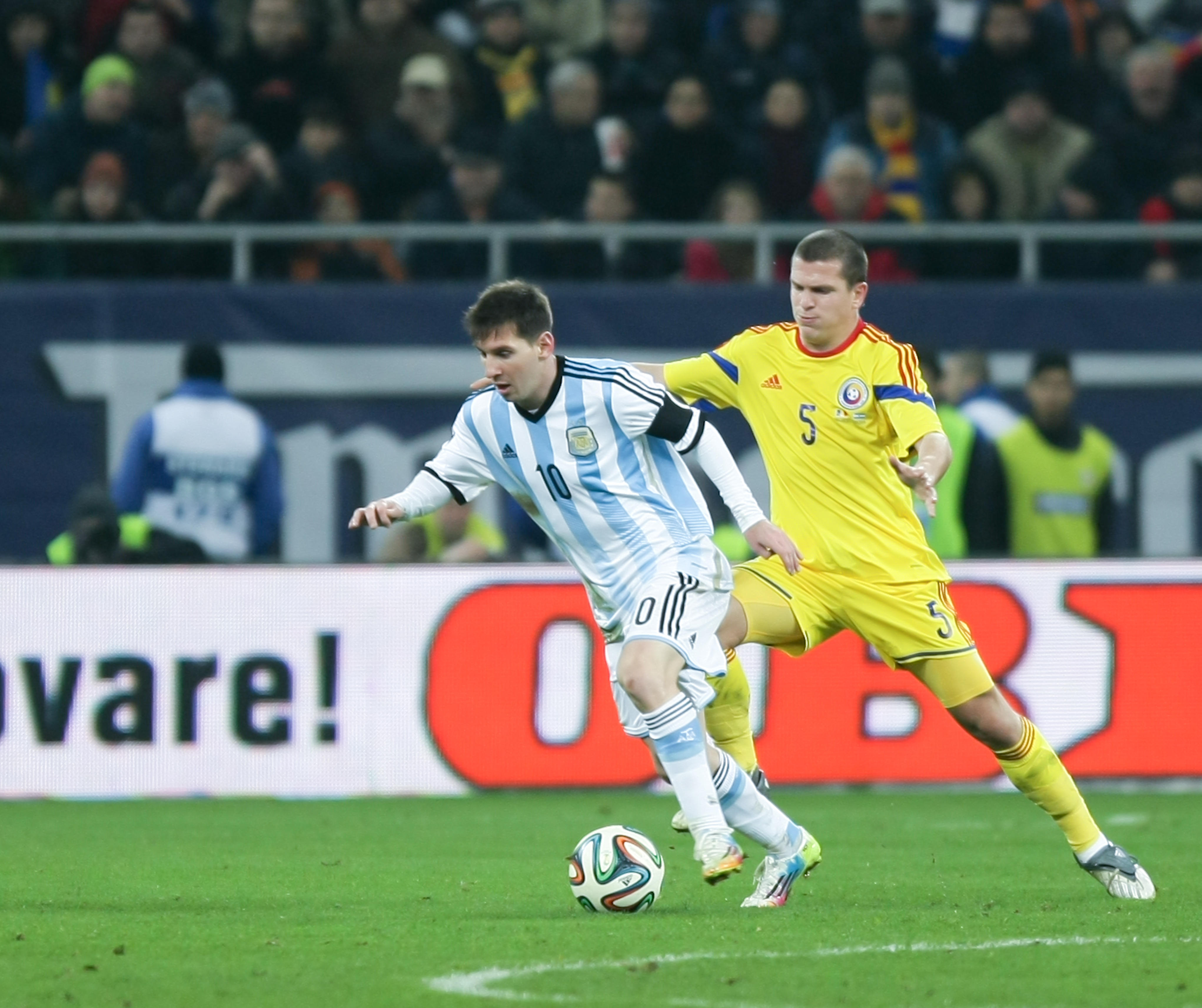 Lionel Messi (la minge) este urmărit de Alex Bourceanu în timpul amicalului România - Germania (0-0) disputat în 2014, pe Arena Națională din București (FOTO: Gabriel Pătruț)