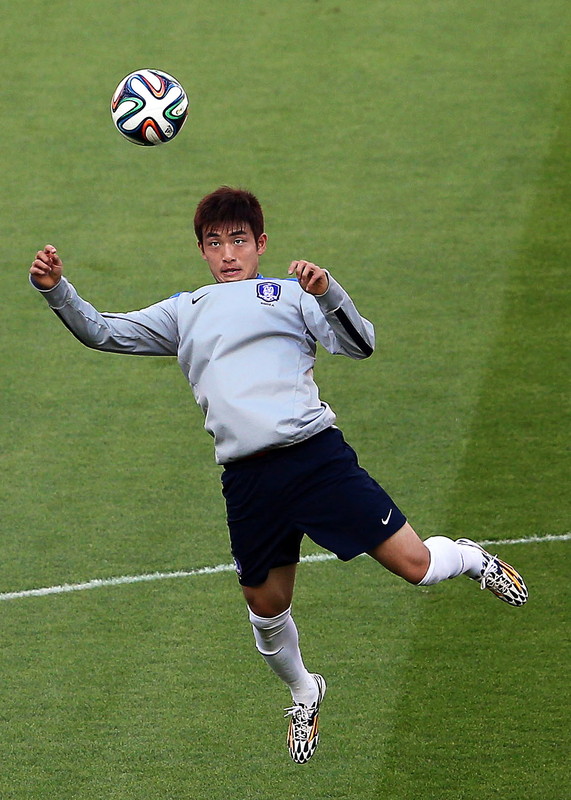 Jucătorul coreean Yun Suk-Young în timpul antrenamentului de pe stadionul ”Beira-Rio” din Porto Alegre. FOTO: EPA