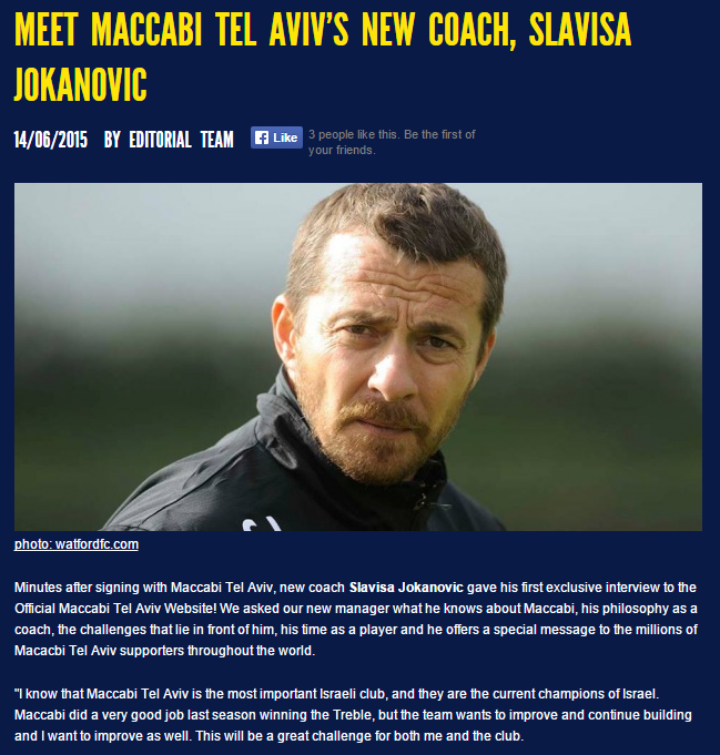 Cu toate acestea, campioana Israelului a anunțat că noul antrenor al echipei este sârbul Slavișa Jokanovici (46 de ani).