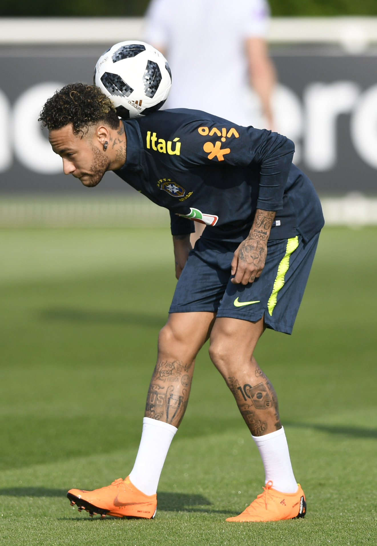epa06771559 Brazil's Neymar Jr attends a training session in London, Britain, 29 May 2018. Brazil's national team prepares for the FIFA World Cup 2018 taking place in Russia from 14 June to 15 July 2018. EPA-EFE/FACUNDO ARRIZABALAGA