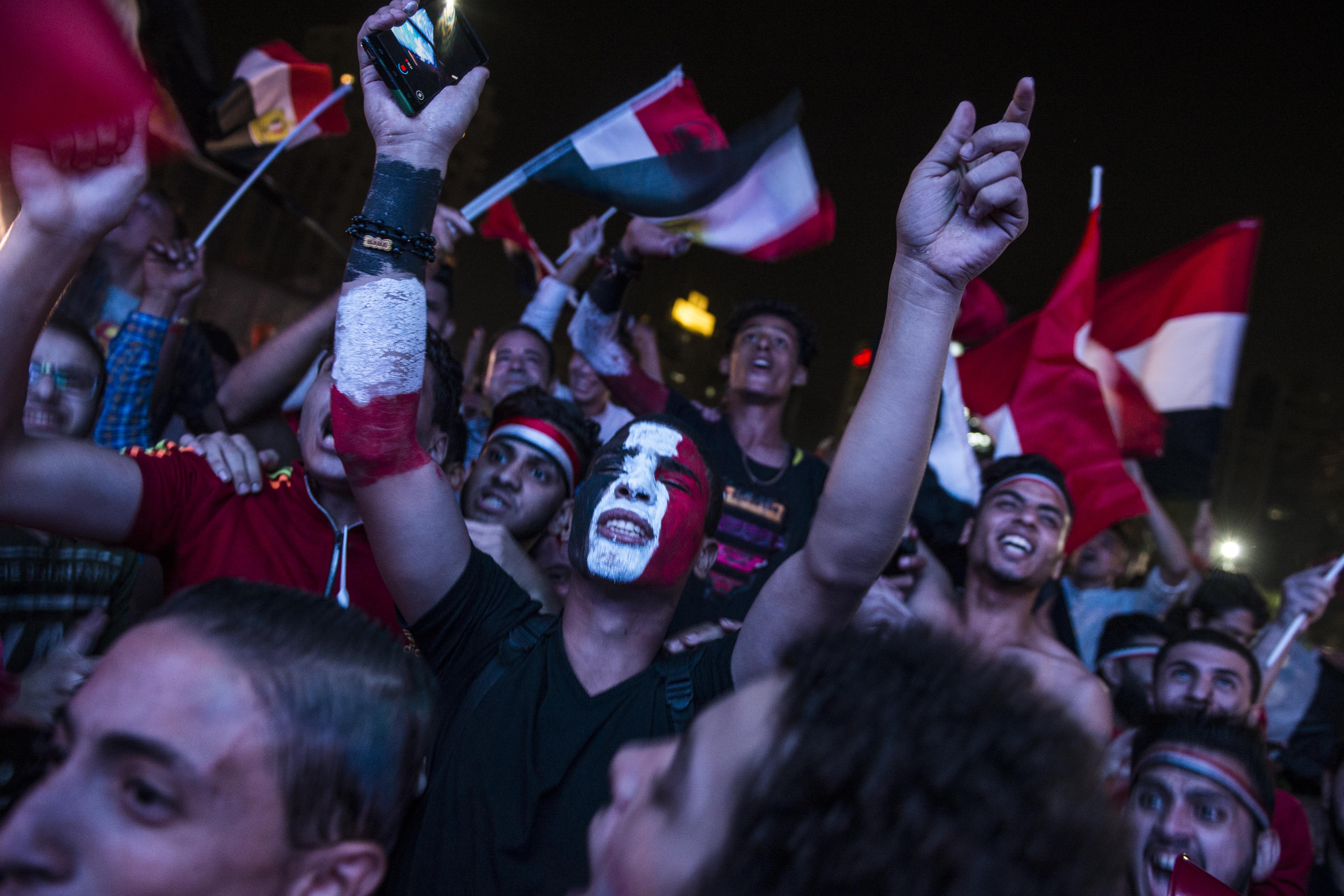 epa06253373 Egyptians celebrate on the streets as the country's national soccer team qualified for FIFA World Cup 2018 by beating Congo 2-0, in Cairo, Egypt, 08 October 2017. EPA-EFE/MOHAMED HOSSAM