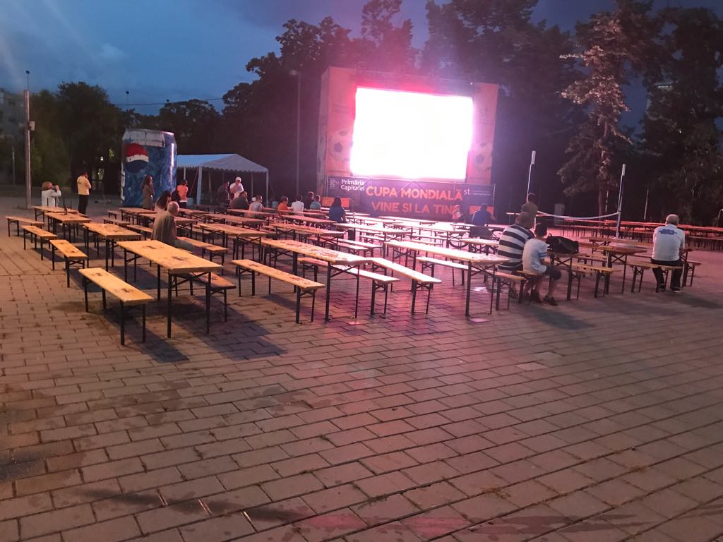 Primăria Capitalei n-are mușterii, la ecranul amplasat lângă Arena Națională. Ploaia i-a alungat pe microbiști / GALERIE FOTO & VIDEO