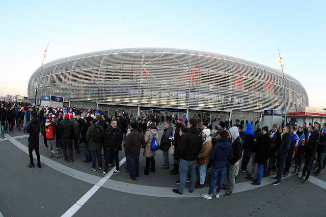epaselect epa05739645 French supporters cheer during the round of sixteen match between France and Iceland at the IHF Men's Handball World Championship, at Pierre Mauroy stadium in Villeneuve d'Ascq, near Lille, France, 21 January 2017. EPA/YOAN VALAT