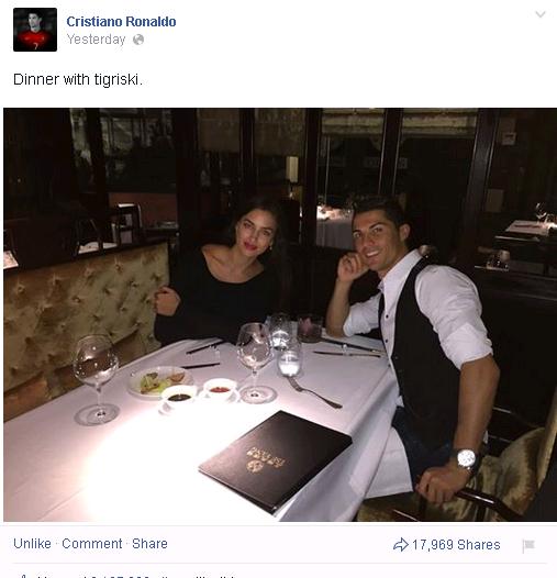 Poza postată de Ronaldo a lăsat să scape un mic detaliu, CR7 a scris şi numele de alint al rusoaicei. Portughezul îi spune ”TIGRISKI”. Deşi Irina Shayk nu ar fi vrut să se afle numele de alint, nu s-a supărat pe iubitul ei.