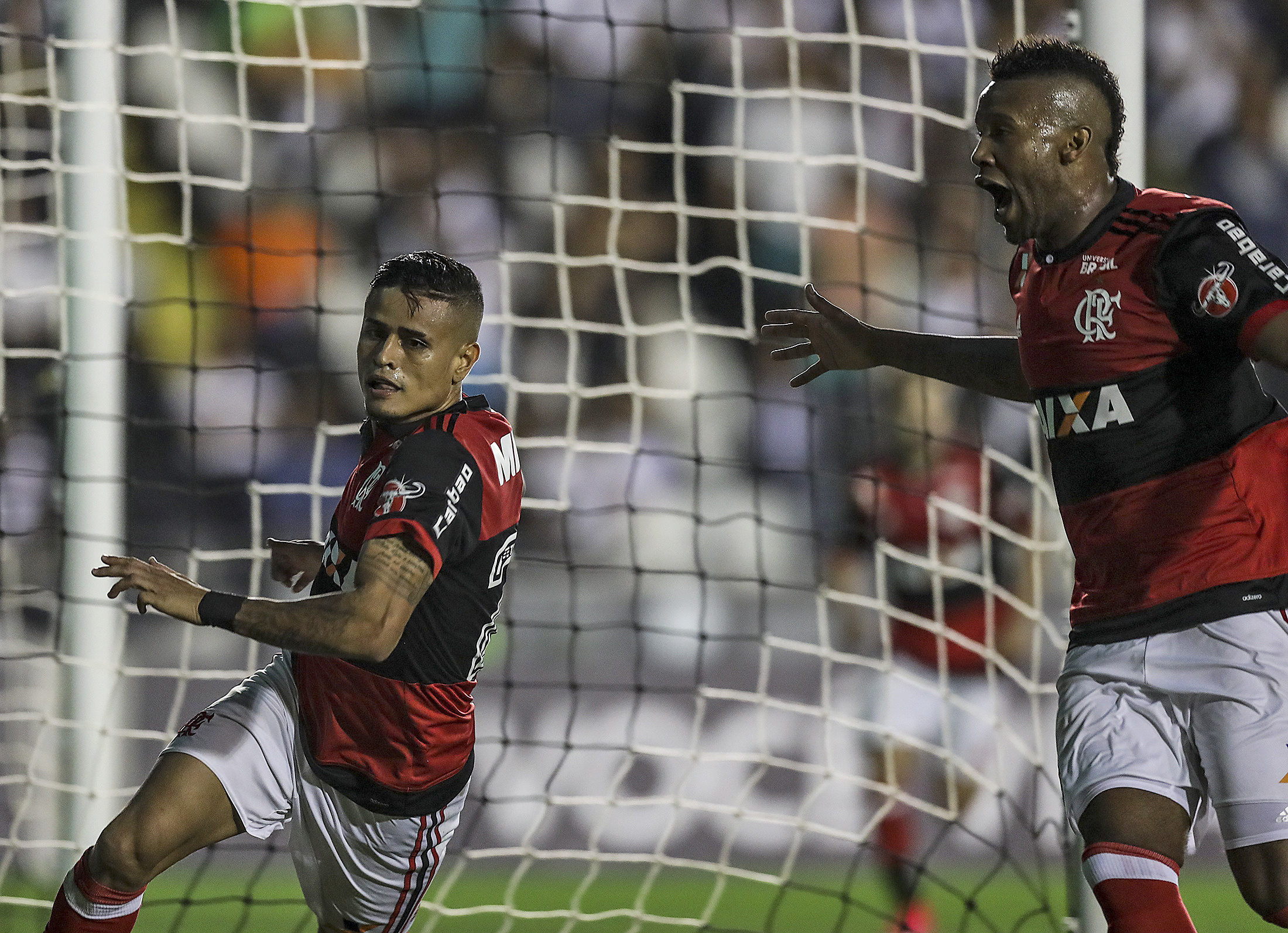 epa06077209 Flamengo's Everton (L) celebrates with his teammate Rafael Vaz (R) after scoring a goal against Vasco de Gama during their Brazilian Championship match at the Sao Januario stadium in Rio de Janeiro, Brazil, 08 July 2017. EPA/Antonio Lacerda