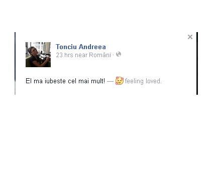 Andreea Tonciu a postat pe un site de socializare o poză cu un căţel la ea în pat. Mesajul scris de asistenta TV a fost unul care, cu siguranţă, l-a făcut să plângă pe fostul fotbalist Nicolae Mitea.”El mă iubeşte cel mai mult”, a scris Tonciu, referindu-se la patruped.