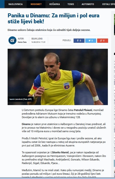 Dnevnik.hr a scris azi că Dinamo Zagreb a făcut o nouă ofertă, de 1.5 milioane de euro. Prima, de numai 1 milion de euro a fost refuzată de stelişti. „Roş-albaştrii” mai vor să-l ţină pe Lato doar până după „dubla” cu Ludogoreţ Razgrad. Lato a intrat în ultimul an de contract şi din ianuarie poate semna gratuit pentru orice alt club. De aceea, echipe din Ghencea vrea să-l vândă, ca să scoată totuşi ceva bani pe el.