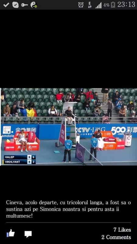 Aceștia au cântat imnul și au strigat ”Simona, te iubim” până când meciul cu Natalia Vihlianţeva s-a încheiat cu victorie în favoarea nr 1 la ora actuală din România.
