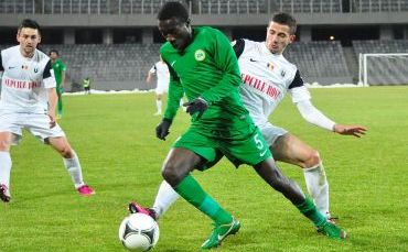 Narcisse Bambara, într-o partidă a Concordiei Chiajna împotriva Universităţii Cluj. FOTO: universitateacluj.ro