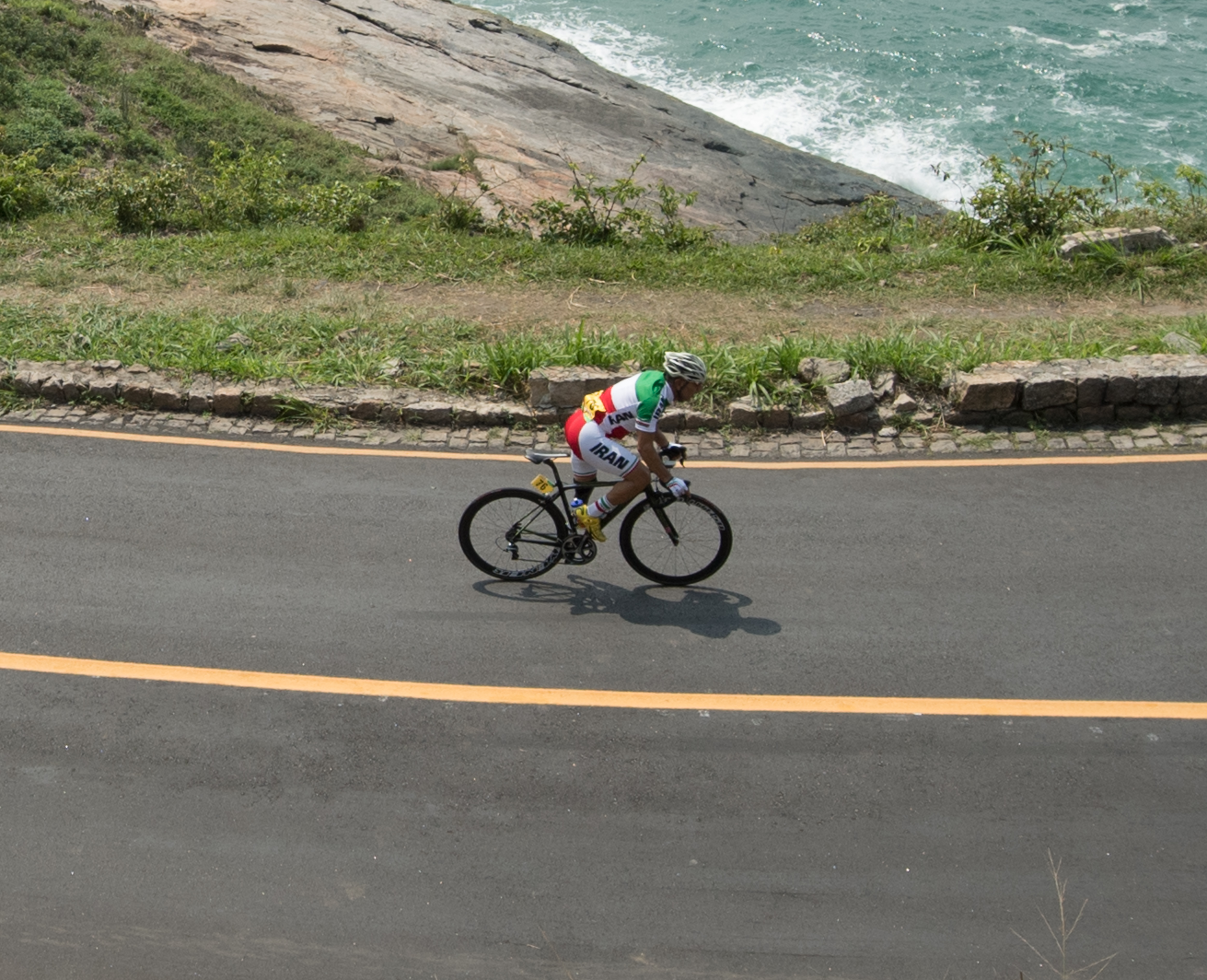 epa05545403 Cyclist Bahman Golbarnezhad of Iran is in action shortly after the start of the Men's Road Race C4-5 during the Rio 2016 Paralympic Games in Rio de Janeiro, Brazil, 17 September 2016. Golbarnezhad died 17 September following a crash in the race. He reportedly was treated at the scene of the accident before taken to hospital. The 48-year old athlete was later announced dead by the Iranian NPC. EPA/FOAD ASHTARI