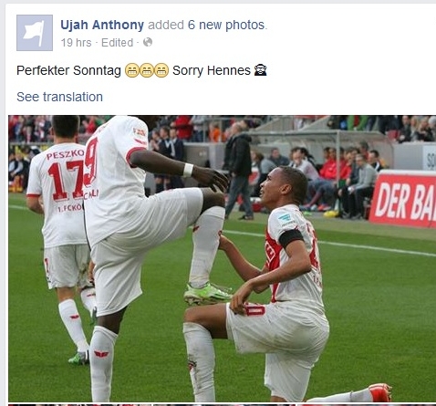 Ujah a sărbătorit trăgându-l cu putere pe „Hennes VIII” de coarne. Atacantul şi-a dat seama că a greşit şi a postat următorul mesaj: „Duminică perfectă… Scuze Hennes”. Ujah a recunoscut, indirect, că a fost prea dur cu animalul.