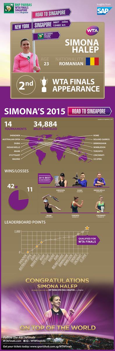 ”Sunt foarte fericită că voi ajunge la Singapore din nou. Anul trecut am avut un rezultat mare, atunci când am ajuns în finală, iar în grupe am învins-o pe Serena. Am să încerc să fac și mai bine anul acesta. Am avut un sezon bun, cu mulți fani susținându-mă în toate colțurile lumii, sper să vină cât mai mulți și în octombrie, la Singapore”, a comentat, la rându-i, numărul 2 WTA.