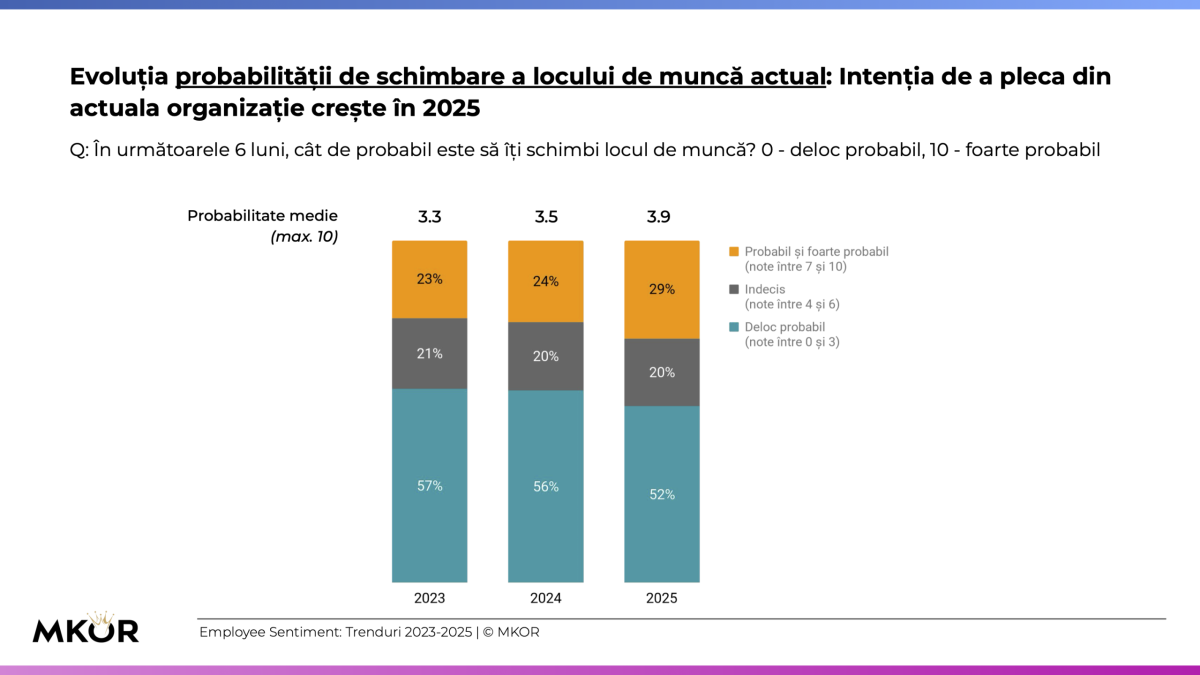 Studiul MKOR evidențiază un „cocktail” toxic de factori care amenință retenția forței de muncă: volum de muncă în creștere, stagnarea veniturilor și percepția tot mai scăzută asupra siguranței locului de muncă. În perioada 2023–2025, moralul angajaților a înregistrat cea mai accentuată deteriorare din ultimii trei ani, iar sentimentul general este de suprasolicitare și nesiguranță.