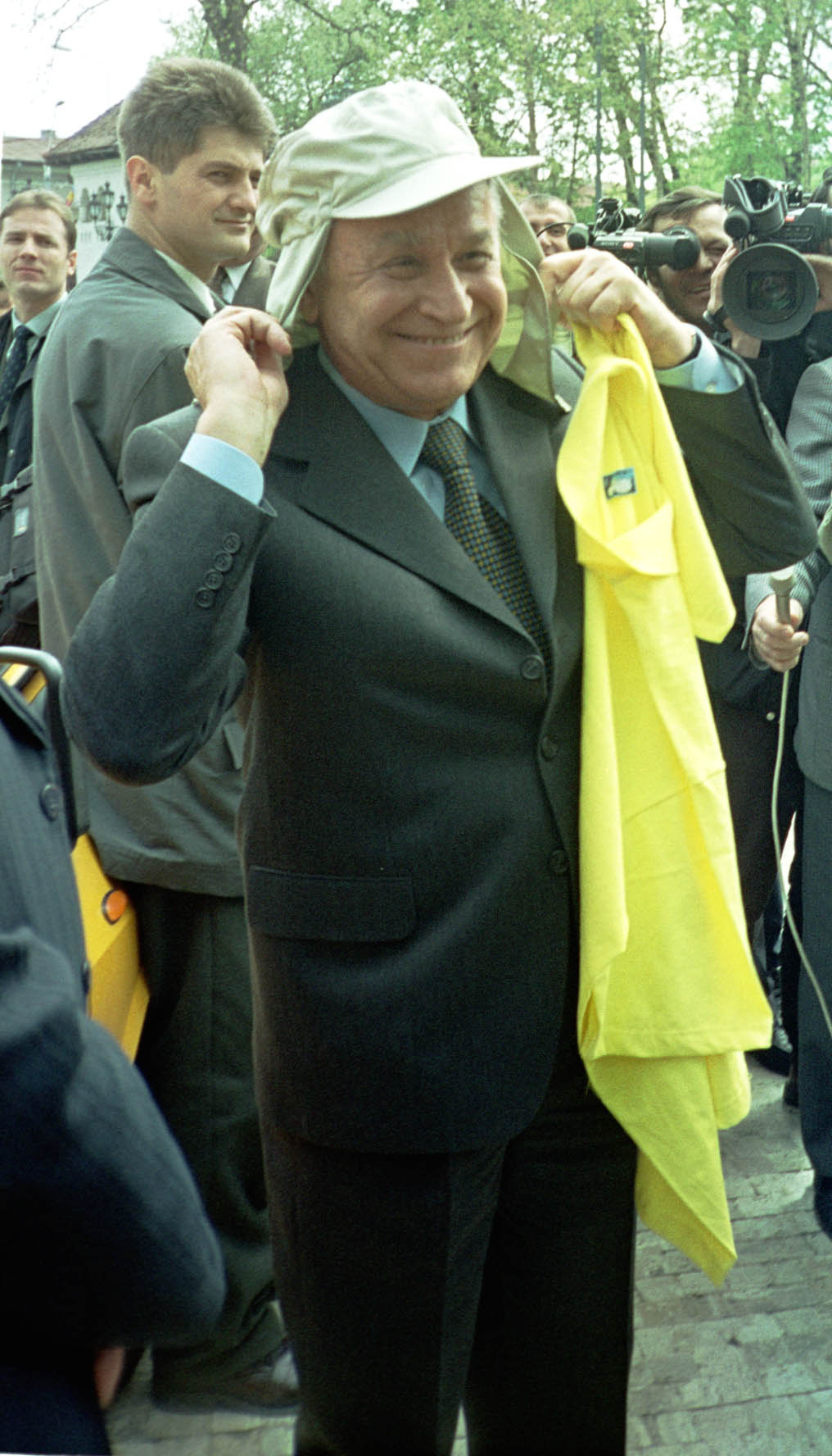 Presedintele Ion Iliescu a dat startul in raliul organizat pentru a treia oara consecutiv de Academia Catavencu, pe ruta Bucuresti - Merzouga - Dakar 17.04.2001 - Bucuresti Foto: Marius Vasilica © Mediafax Foto