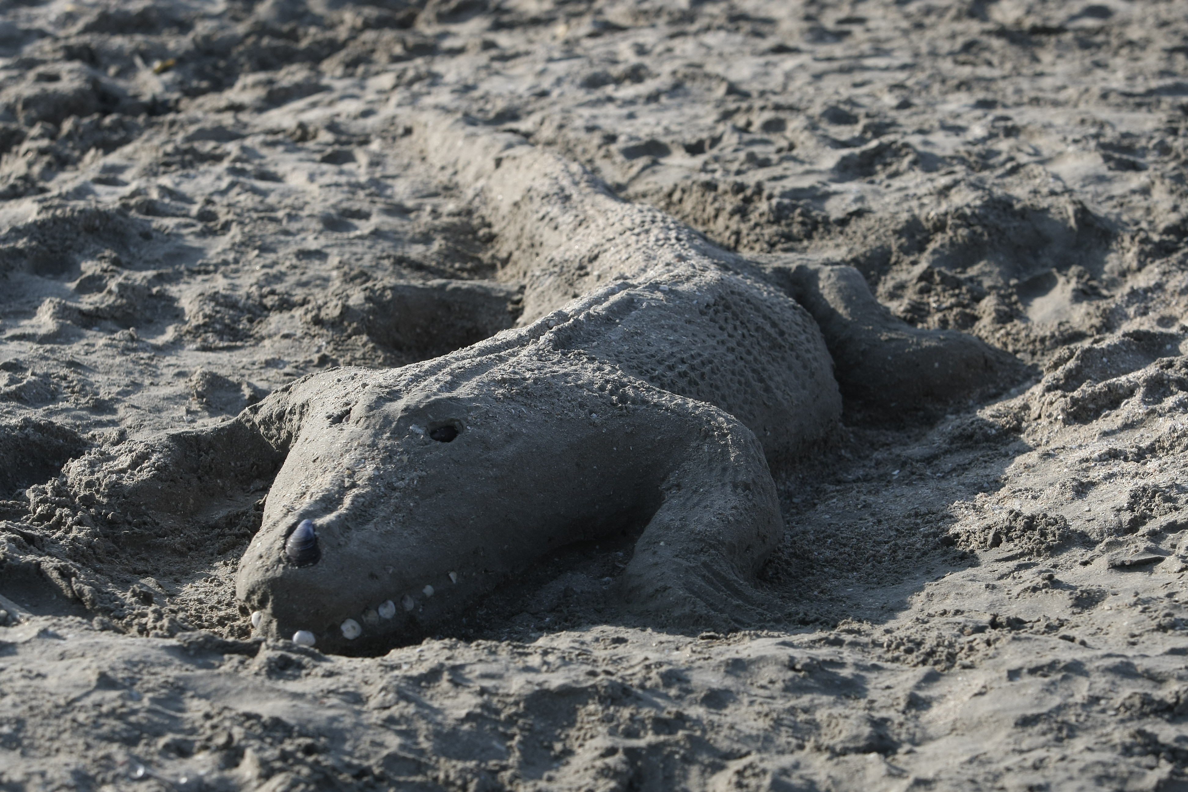 Balene eșuate și crocodili la malul Mării Negre. Animăluțele din nisip sunt opera unor artiști de-o schioapă