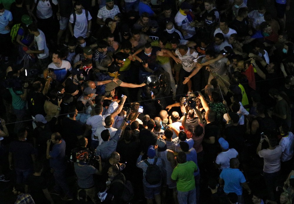 Doi jandarmi au fost luați la bătaie de protestatari. O femeie a cazut pradă furiei manifestanților